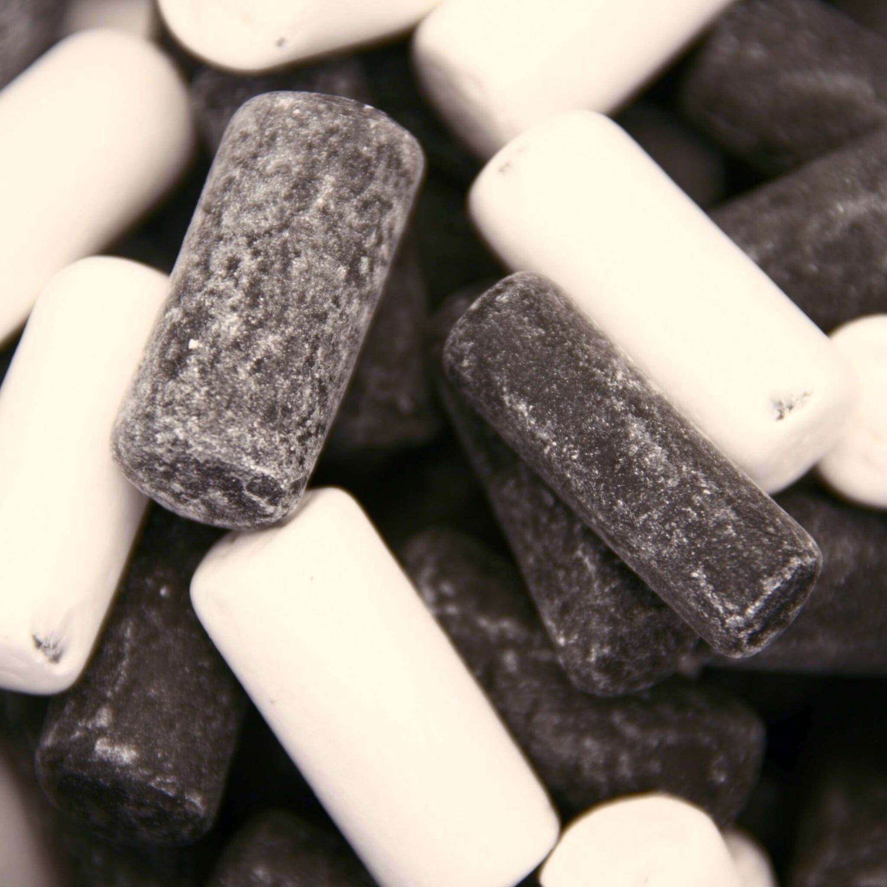 Unser Kreidemix entführt dich geschmacklich zurück in die Schulzeit: Weiße und schwarze Lakritzstücke in Kreideform mit knackiger Außenkruste und zwei unterschiedlichen Füllungen.